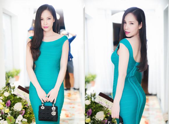 (Xã hội) - Xuất hiện trong sự kiện, Ngọc Bích nổi bất với đầm của thương hiệu Herve Leger có giá 1200 USD, cùng túi xách Christian Dior 3500 USD và giày Christain Dior 1200 USD